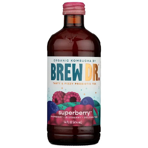 - Brew Dr. Kombucha Superberry Kombucha is a light and fruity mix of raspberry, blueberry, goji berry with hibiscus and oolong tea.