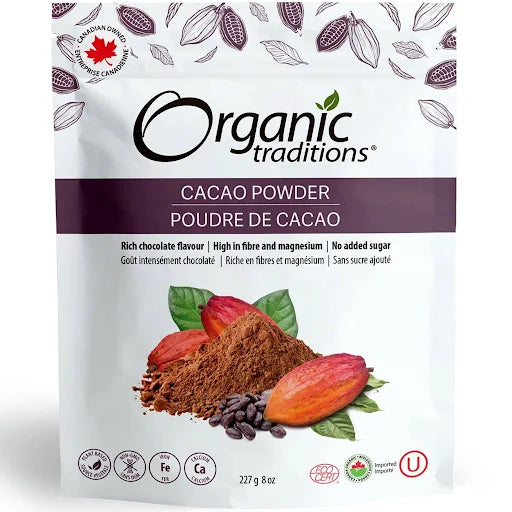 Cacao was once so revered by the Mayans and the Aztecs that it was used as currency. Flavored with chilies, vanilla, cinnamon, nutmeg and other spices, the beans were traditionally ground into a paste to make delicious chocolate dishes and ceremonial drinks. A true superfood, cacao powder is a good source of Magnesium, Iron and Zinc and a very high source of Fiber. Cacao also contains essential minerals and a host of antioxidants giving it an ORAC value of 11,000 per 1 heaping tablespoon 20 gram serving. While most Cacao nibs are roasted, Organic Traditions Cacao nibs are raw with no added flavors or additives. The nibs are then pressed into a paste and the Cacaos fat content is removed, yielding delicious Cacao powder. While many other cacao powders have added sugar, Organic Traditions is pure, rich cacao powder in its natural state with no added flavorings or sweeteners.