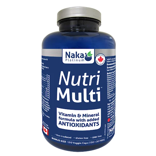 Naka Nutri Multi - Gluten-free, non-GMO multivitamin and mineral supplement with antioxidant herbs. The majority of Vitamins and Minerals are not synthesized within the body, and must be obtained through diet, or nutritional supplementation. In today's world of over-processed foods and poor dietary habits, a daily multi-vitamin and mineral supplement provides "extra insurance" that your body is getting all the vitamins and nutrients it needs for optimal health and immune system support.