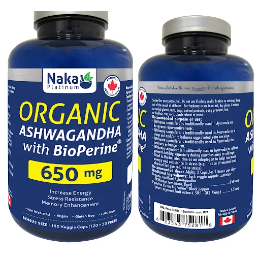 Ashwagandha, a well-known medicinal herb with powerful adaptogenic properties, is enhanced by Naka Platinum's Organic Ashwagandha with BioPerine. BioPerine is a black pepper extract that contains the alkaloid piperine and has been shown to increase the absorption of Ashwagandha. This traditional herb is used as an adrenal and nervous system tonic, an adaptogen, and an immune modulator, and is known in Ayurveda as a Rasayana (rejuvenation) herb that promotes both physical and mental well-being, revitalizes the body, and extends longevity.
