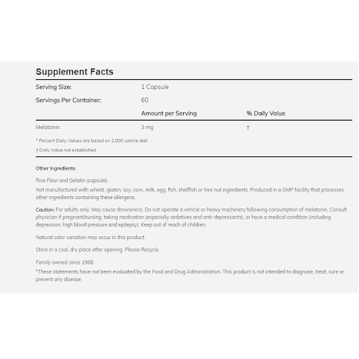 Research indicates that Melatonin may be associated with the regulation of sleep/wake cycles. Melatonin is a potent antioxidant that defends against free radicals and helps to support glutathione activity in the neural tissue.Suggested Usage: As a dietary supplement, take one capsule near bedtime with water. Capsule may be opened and the contents divided over several evenings if desired. Consider taking this product in combination with 5-HTP.